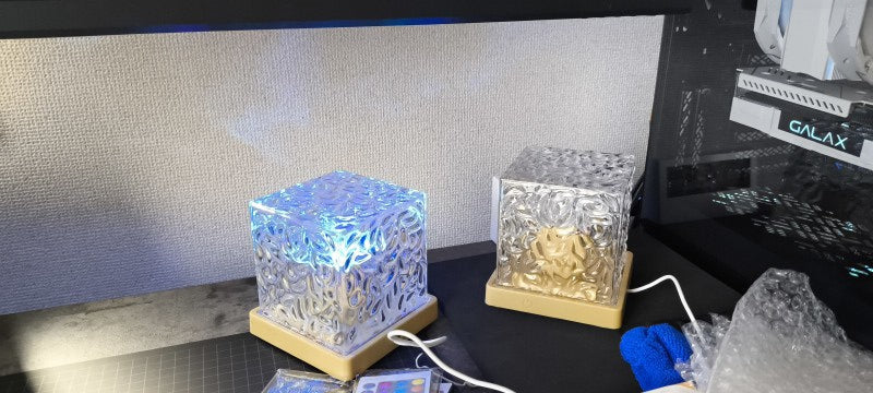 La Lámpara tiene un diseño compacto y moderno, ideal para colocar en escritorios, mesas de noche o como decoración ambiental.